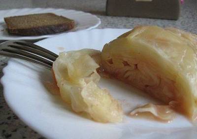 Во втором случае разрезают кочаны на четыре части, удаляют кочерыгу и погружают капусту в кипяток на 5 мин. Затем готовят отвар: cельдерей (200 г листьев и корнеплода), чеснок (50 г) и столовую ложку поваренной соли заливают двумя стаканами воды и кипятят 3 мин. Полученный отвар процеживая сливают и остужают.